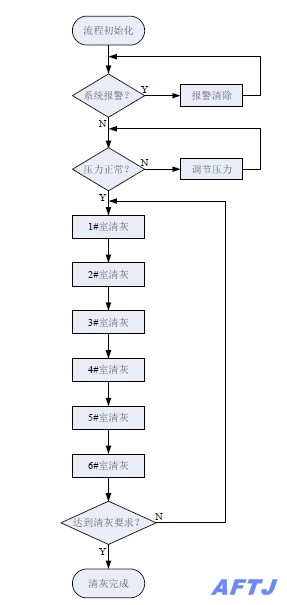 WinCC V7.0,可以對設備進行單體操作和流程控制。下面以1號生產線的除塵系統的流程控制為例,說明控制系統的工作流程,詳見圖3: